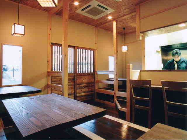自宅の居間の延長上にあるような、無垢の木材をふんだんに使った、大将の気さくな店。